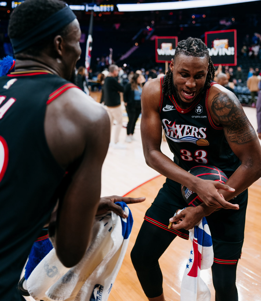 沃克背靠背的两场比赛都拿到20+,合计42分17篮板6个三分球,这位身高2.01米的锋线今年只有23岁,他是2022年次轮27顺位被选中进入联盟,可他在开拓者打了三个赛季都不温不火,没想到来到费城后脱颖而出。
